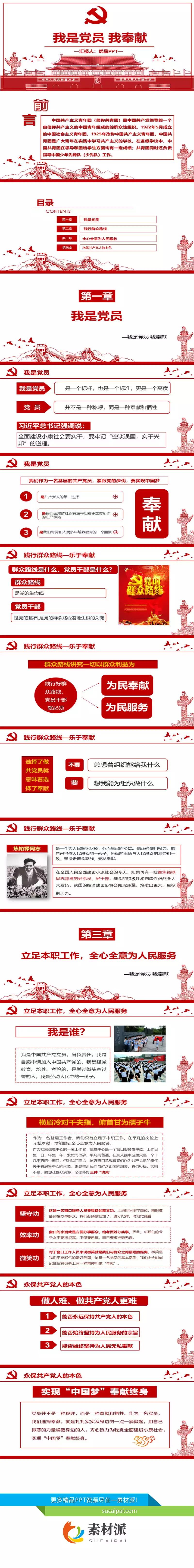 我是党员我奉献党课PPT模板 - 素材派PPT