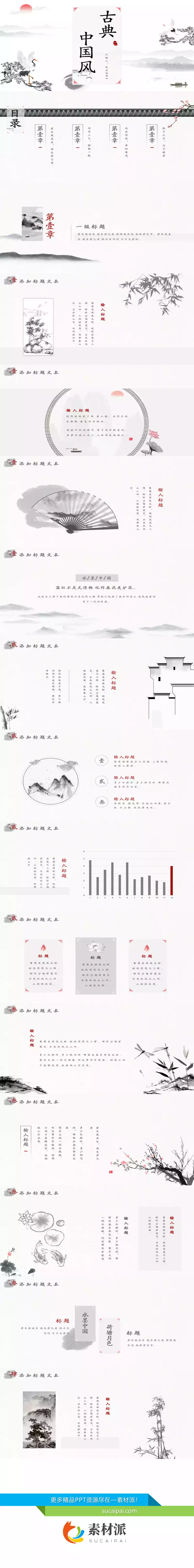 淡雅古典水墨中国风PPT模板 - 素材派PPT