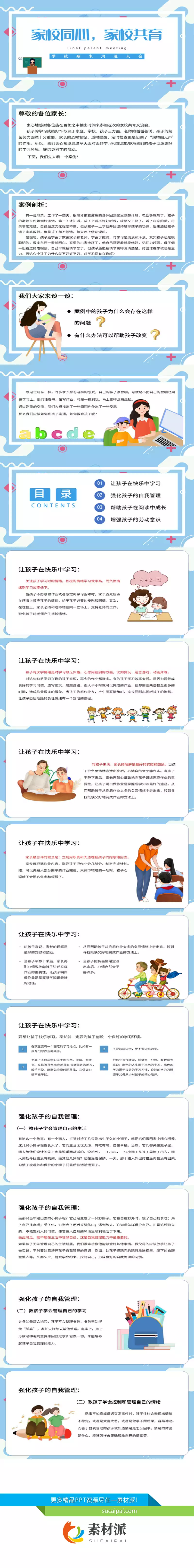 家校同心家校共育家长会PPT模板 - 素材派PPT