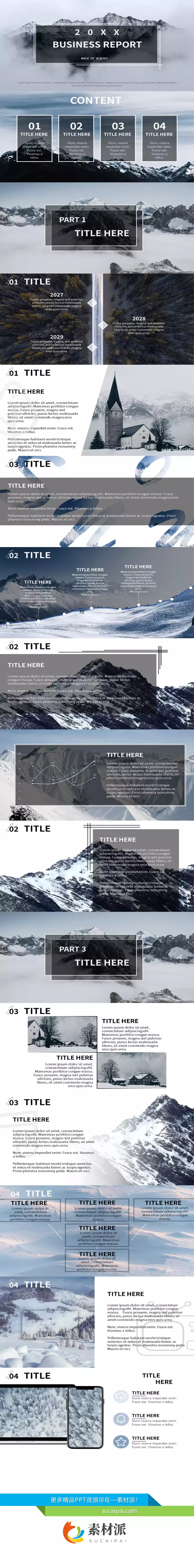 大气自然雪山时尚杂志风PPT模板 - 素材派PPT