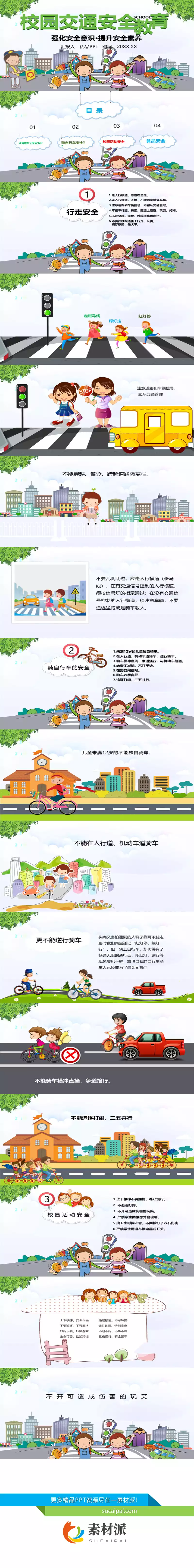 小学生交通安全教育PPT模板 - 素材派PPT