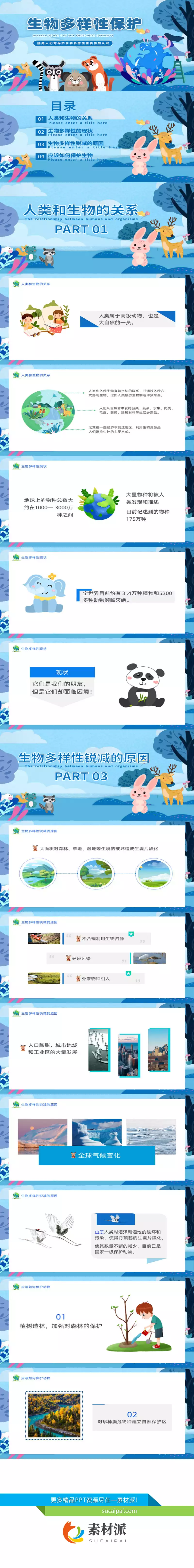 生物多样性保护PPT模板 - 素材派PPT