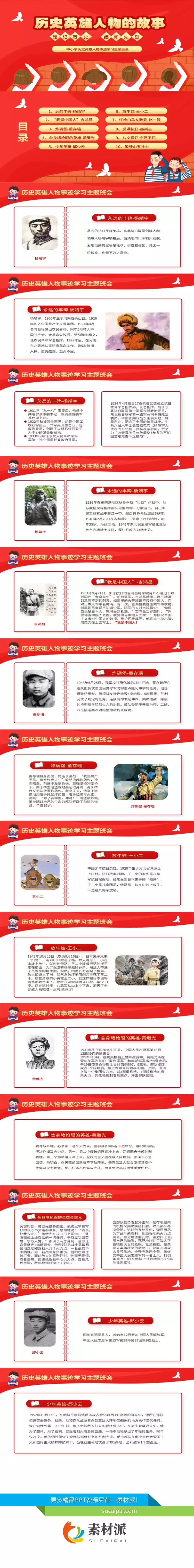 红色教育英雄人物事迹故事班会PPT模板 - 素材派PPT