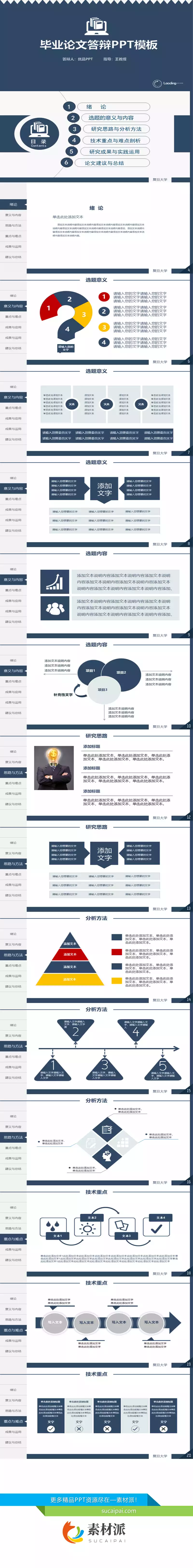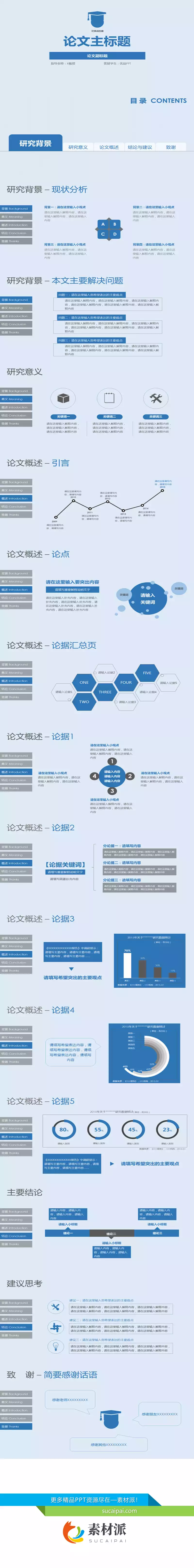 蓝色侧边导航论文答辩PPT模板 - 素材派PPT