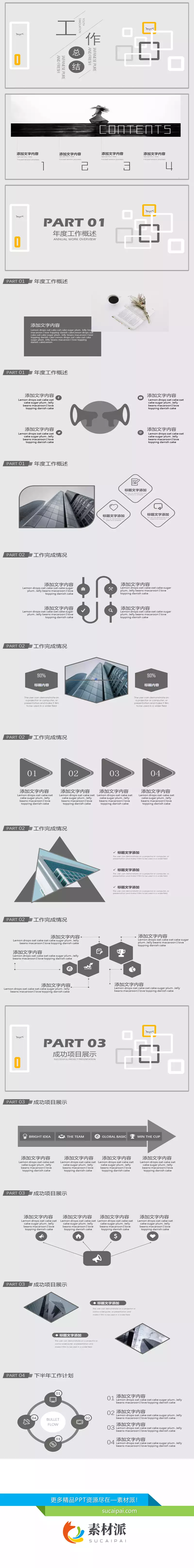 灰色工作汇报总结PPT模板 - 素材派PPT
