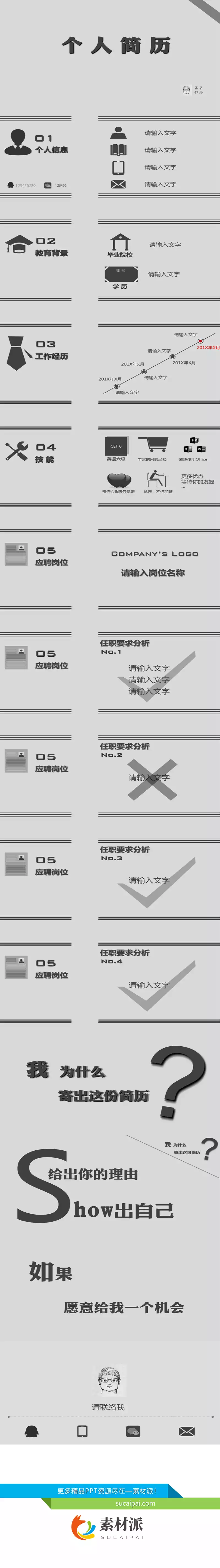 灰色稳重求职简历PPT模板 - 素材派PPT