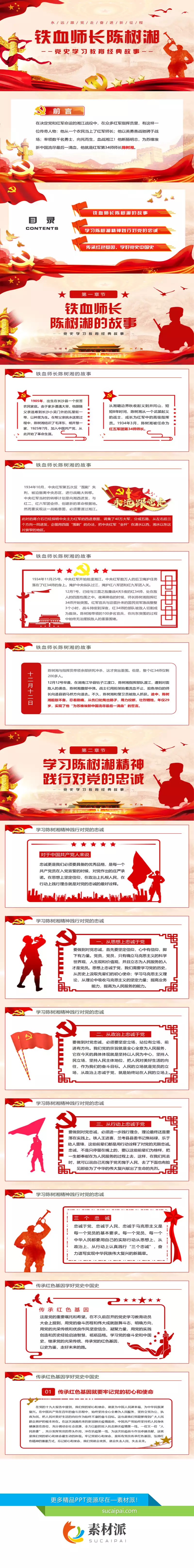 红色教育铁血师长陈树湘PPT模板 - 素材派PPT