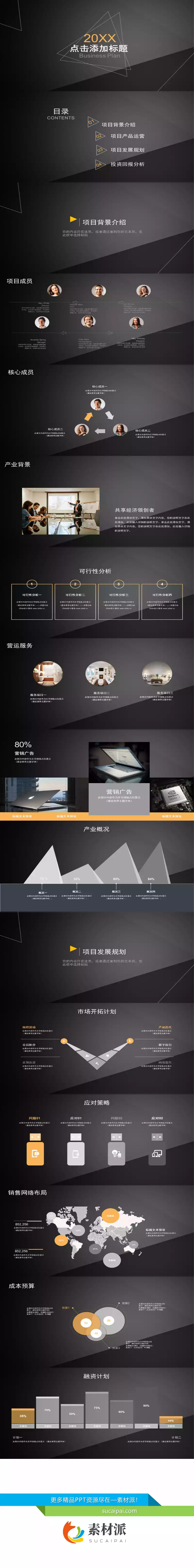 欧美范纯黑色背景PPT模板 - 素材派PPT