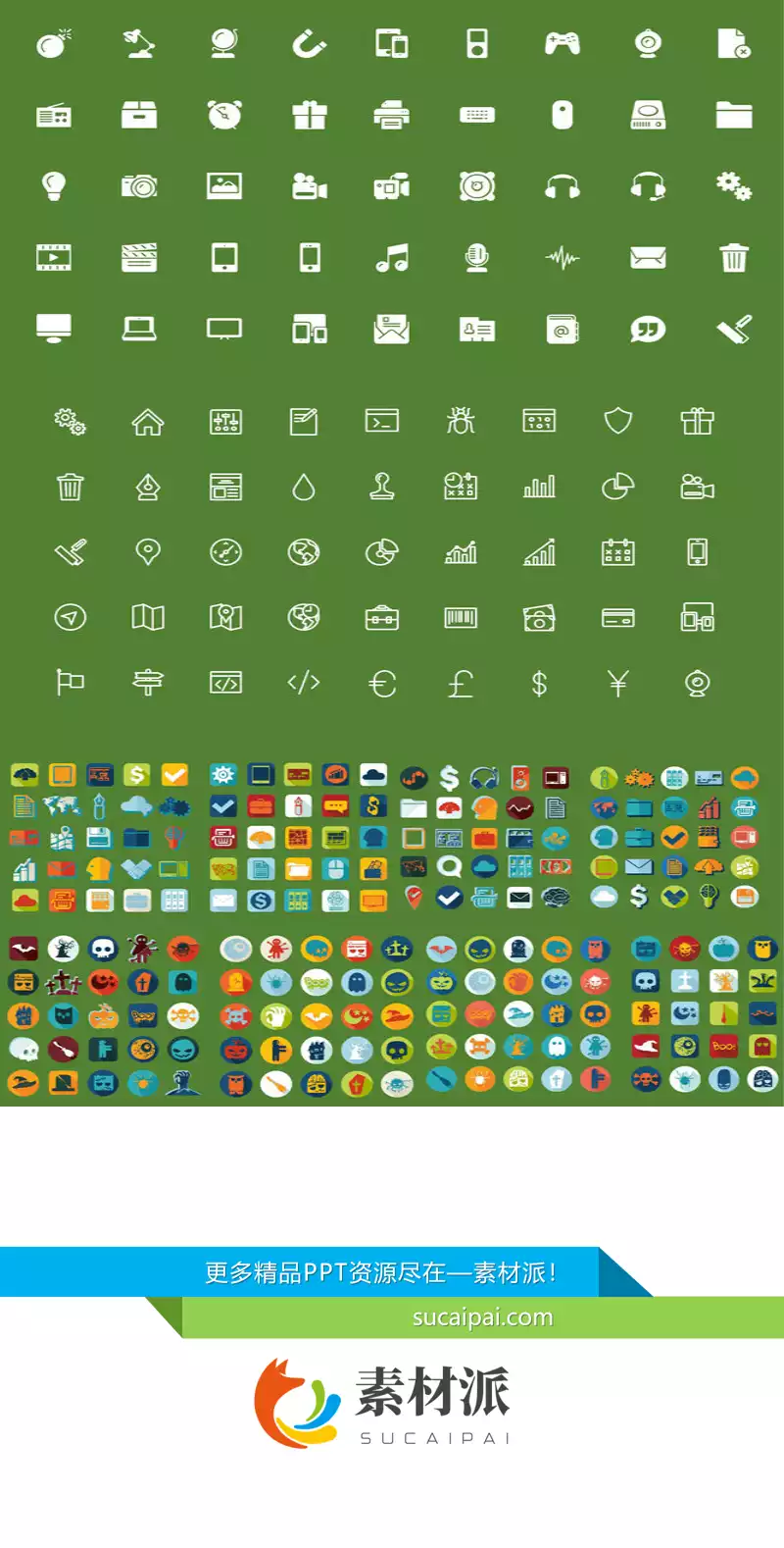 200个彩色扁平化PPT小图标 -【素材派PPT】