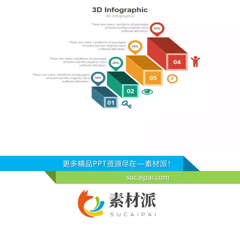 简洁折叠效果PPT递进关系图 - 素材派PPT