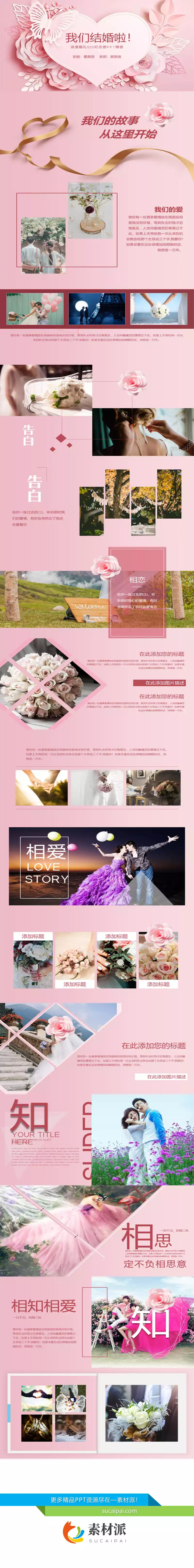 粉色我们结婚了婚礼相册PPT模板 - 素材派PPT