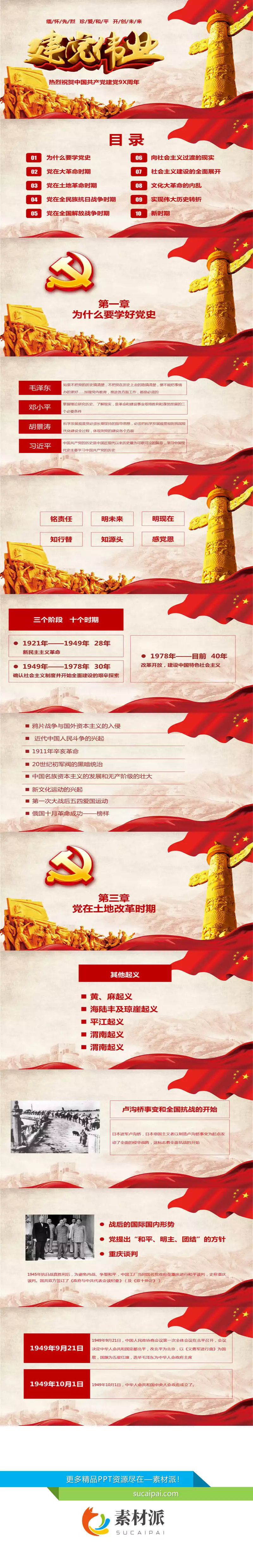 党史学习庆祝建党节PPT模板 - 素材派PPT