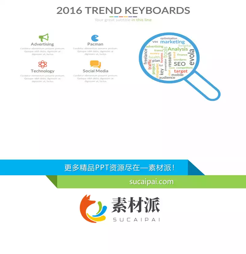 放大镜研究分析罗列PPT图形 - 素材派PPT