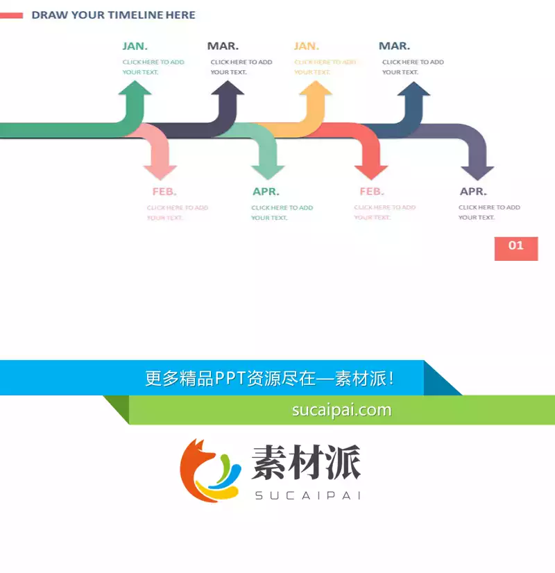 彩色箭头PPT时间轴模板 - 素材派PPT