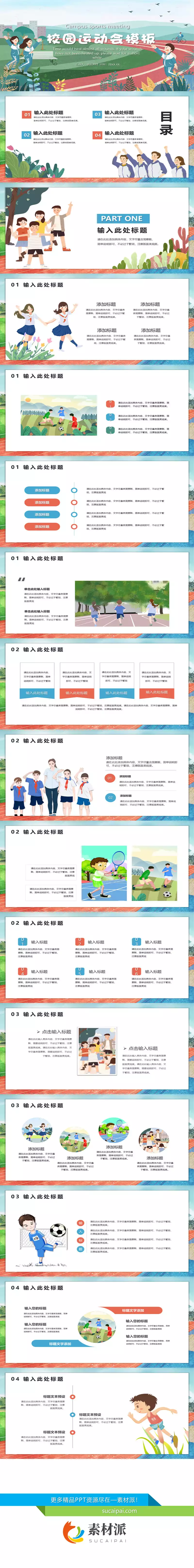 学校秋季校园运动会PPT模板 - 素材派PPT