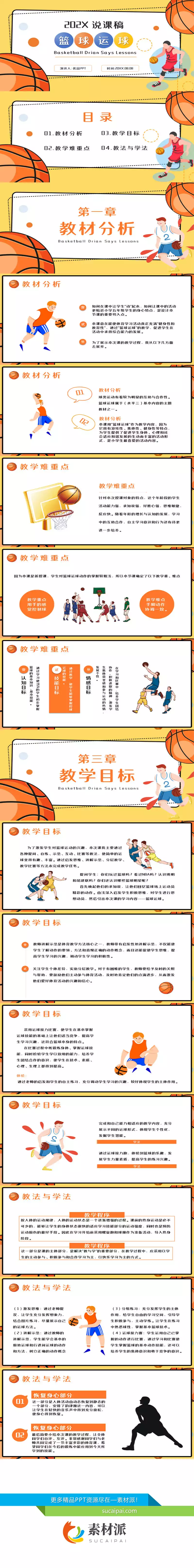 篮球体育课教学说课PPT模板 - 素材派PPT