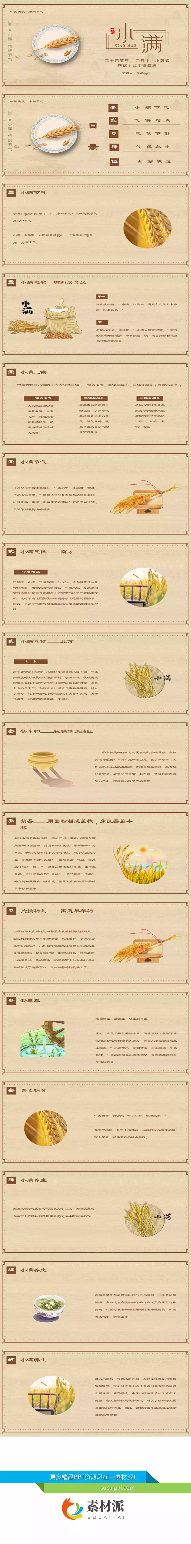 盘子麦穗小满节气PPT模板 - 素材派PPT