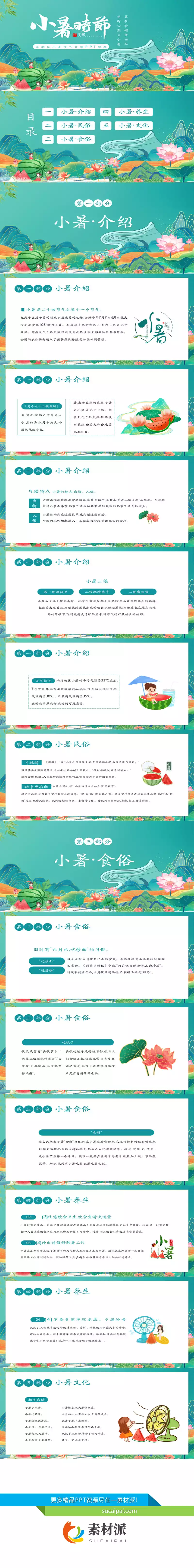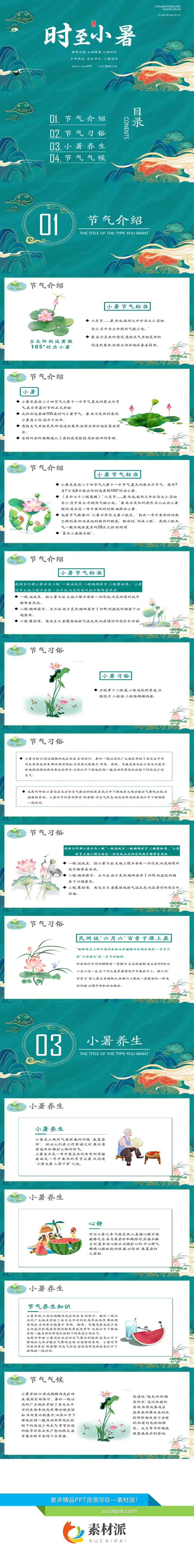 中国风小暑节气介绍PPT模板 - 素材派PPT
