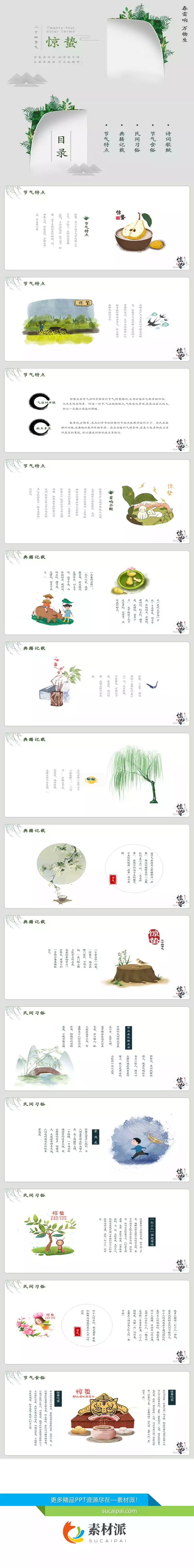 春雷响万物生惊蛰节气PPT模板 - 素材派PPT