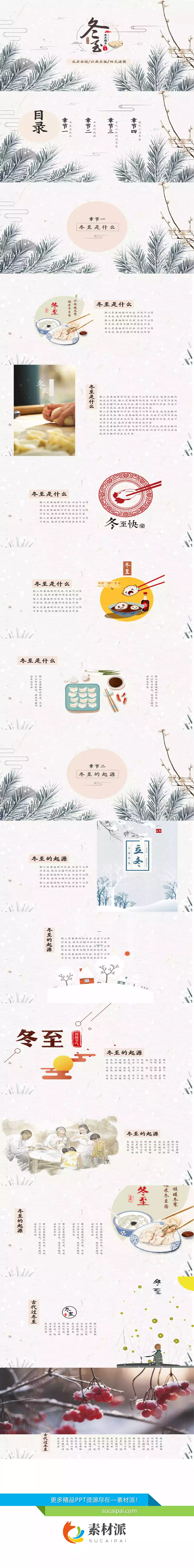 下雪冬至节气主题PPT模板 - 素材派PPT