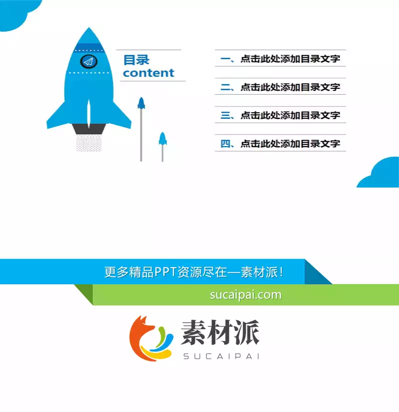 蓝色小火箭PPT目录模板素材 -【素材派PPT】