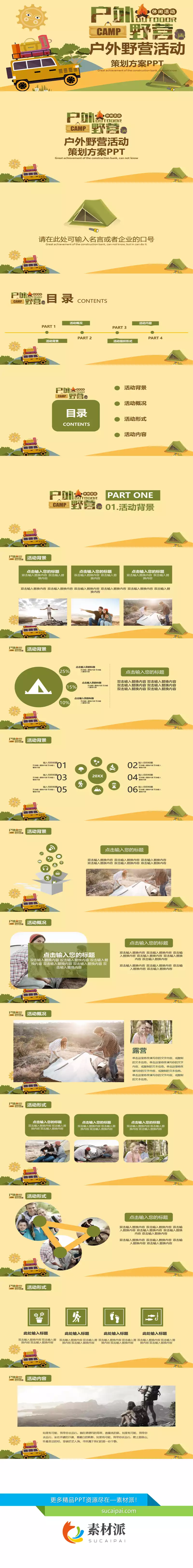 旅行户外野营露营活动策划PPT模板 - 素材派PPT