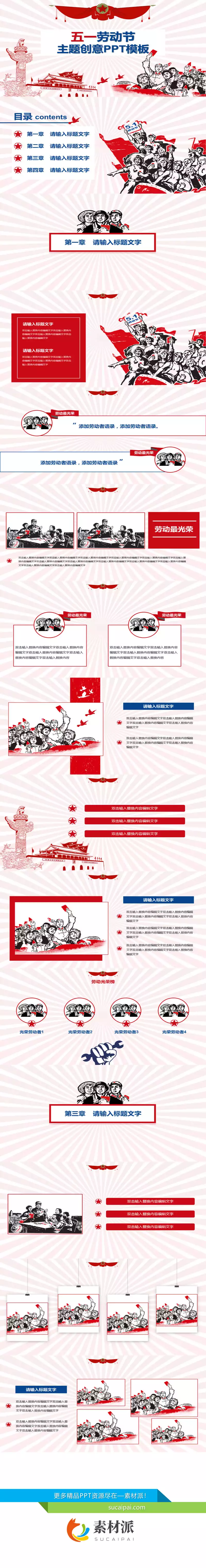 红色喜庆劳动节快乐PPT模板 - 素材派PPT