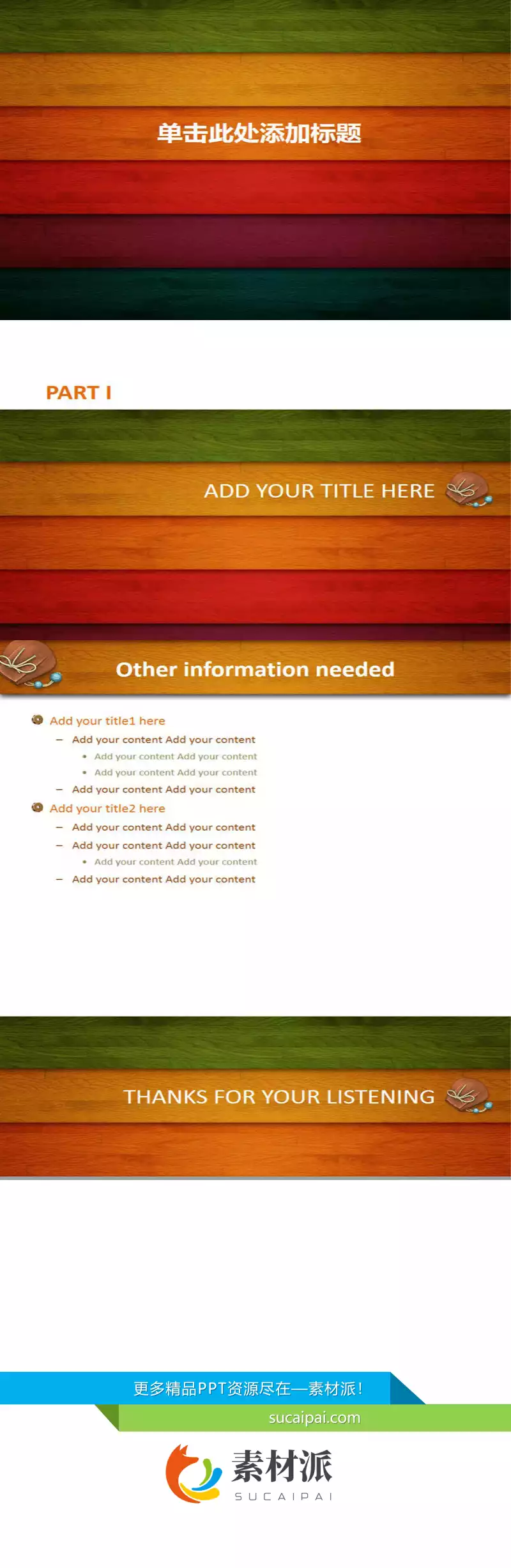 彩色木纹木板PPT背景图片 - 素材派PPT