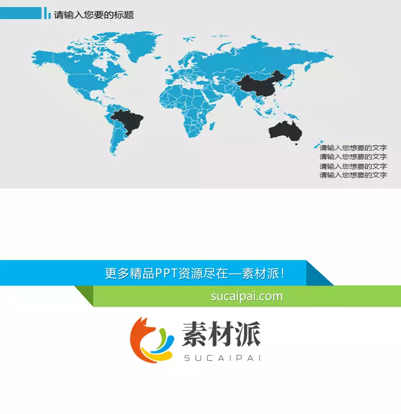 蓝灰大气世界地图PPT素材 - 素材派PPT