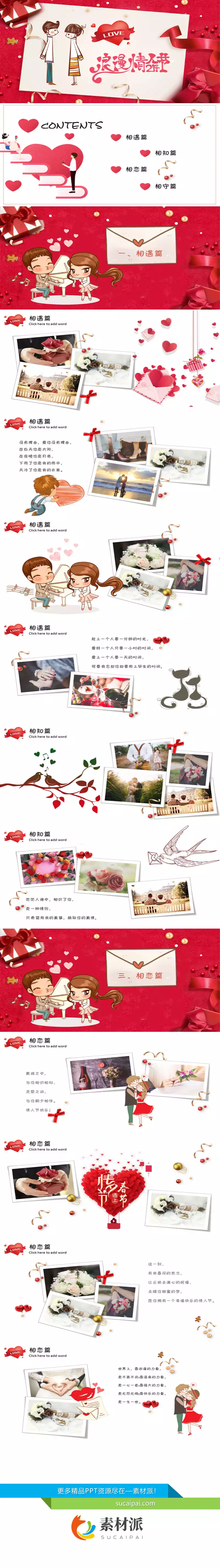 可爱卡通浪漫情人节PPT模板 - 素材派PPT