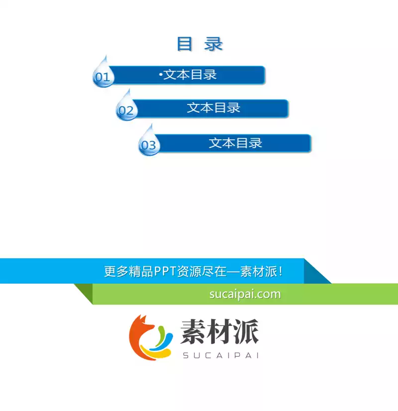 蓝色水滴设计PPT目录素材 -【素材派PPT】