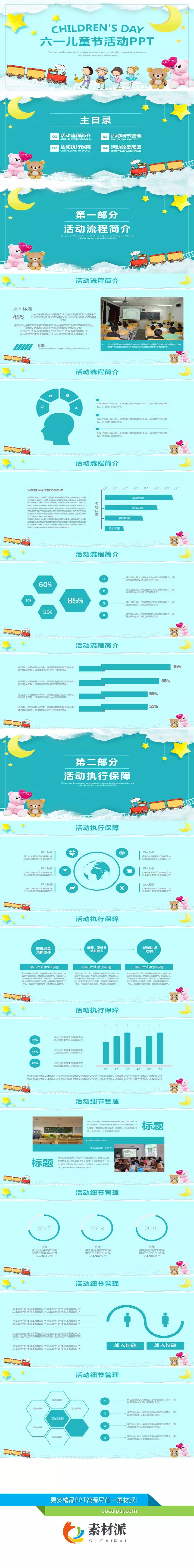 卡通六一儿童节活动PPT模板 - 素材派PPT