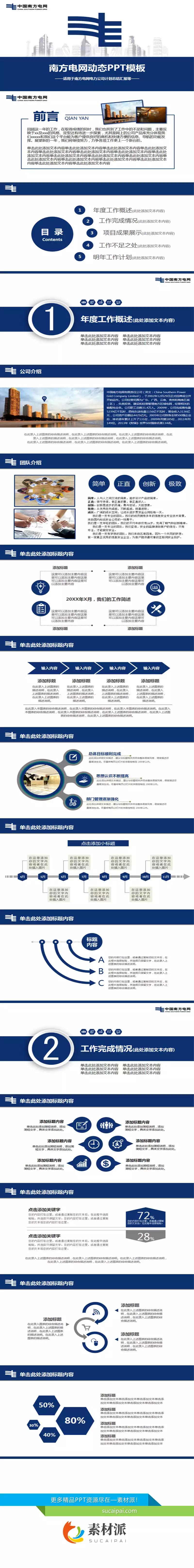 南方电网工作汇报PPT模板 - 素材派PPT