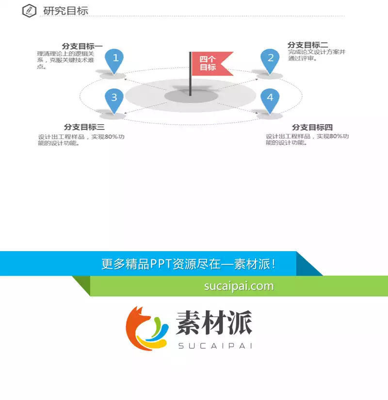 红旗四个目标罗列PPT模板 - 素材派PPT